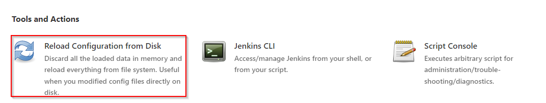 # Jenkins 관리 메뉴에서 "Reload Configuration from Disk" 버튼 클릭